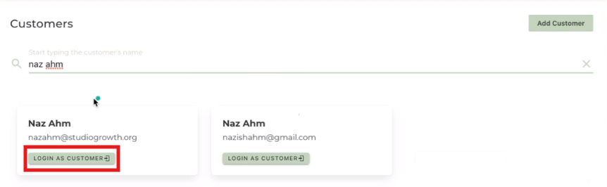 After logging into the Staff portal, you must access the 'Customers' tab from the side menu.