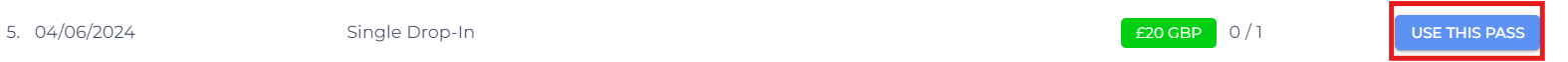 - Select the required pass and click the 'Use This Pass' button to finish assigning the class.