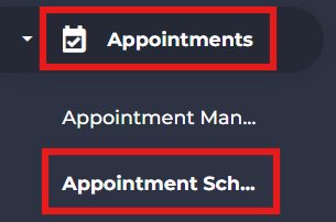 - Click 'Appointments' in the side menu and access 'Appointment Schedule'.