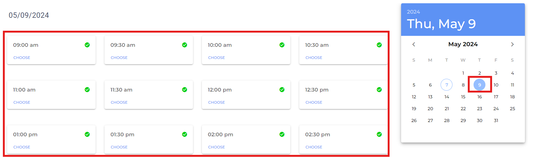 - Select the required day, timeslot scroll down and click 'Continue'.
