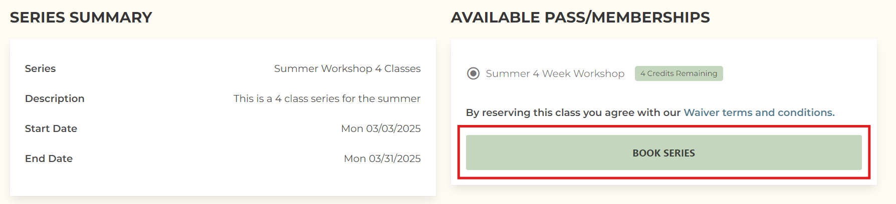 - Go to the Series tab and click 'Book This Series' on the desired series.